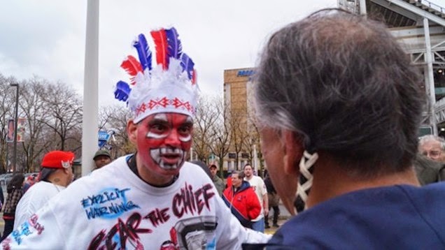 2014, April 4th at the Anti-Wahoo/Cleveland Indian demonstration - this Wahoo doesn't know why this American Indian would feel disrespected.